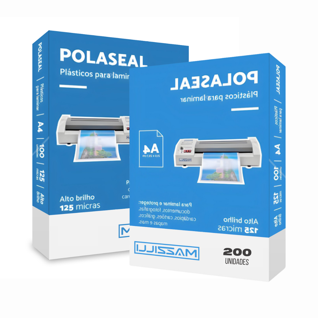 O A4 é ideal para a utilização em plastificadoras a quente, fornecendo excelente acabamento e plastificação perfeita. Com acabamento profissional, o Polaseal A4 totalmente transparente e brilhante, já é fornecido no tamanho correto para plastificar identidade padrão, por isso não precisa de corte e acabamento, pois já possui cantos arredondados. Todos os plásticos são soldados em um dos lados, bastando colocar a identidade dentro das lâminas e inserir na plastificadora.